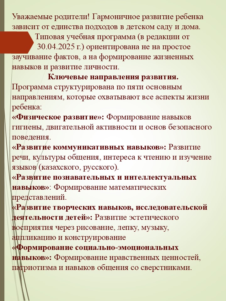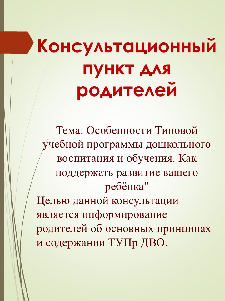 Консультационный пункт для родителей. Тема: Особенности Типовой учебной программы дошкольного воспитания и обучения. Как поддержать развитие вашего ребёнка»